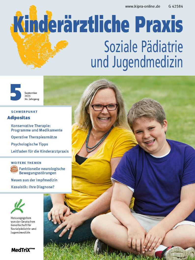 Wichtigste Zeitschrift für Kinderärztinnen und Kinderärzte zu den Themen Entwicklungsstörungen, chronische Erkrankungen und Behinderungen. Neben der Behandlung von Akuterkrankungen ist die Kinderärztin/der Kinderarzt heute vor allem bei der Unterstützung einer möglichst gesunden Kindesentwicklung gefordert. Denn ihr steht vieles entgegen: Vernachlässigung und Missbrauch, Adipositas, ADHS, Allergien, Drogen und Gewalt. So sieht der Alltag in einer Kinderarztpraxis heute aus. Deshalb schätzen die Pädiaterinnen und Pädiater die Kinderärztliche Praxis als kompetenten Ratgeber.