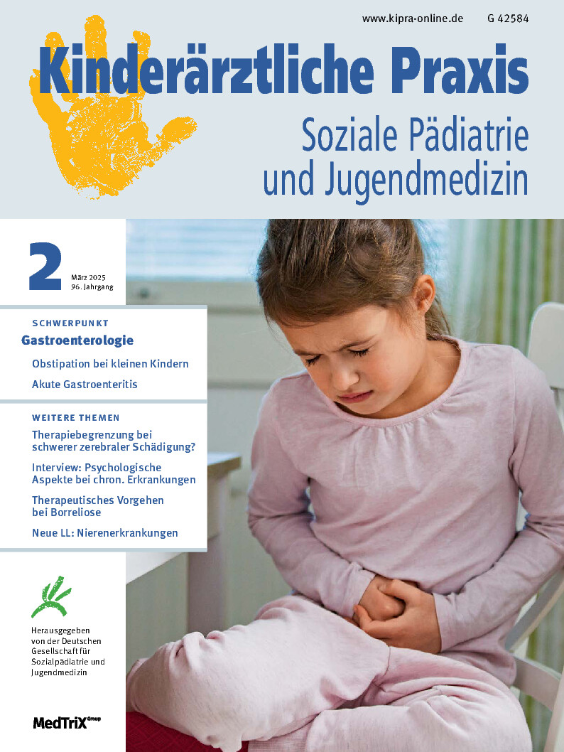 Wichtigste Zeitschrift für Kinderärztinnen und Kinderärzte zu den Themen Entwicklungsstörungen, chronische Erkrankungen und Behinderungen. Neben der Behandlung von Akuterkrankungen ist die Kinderärztin/der Kinderarzt heute vor allem bei der Unterstützung einer möglichst gesunden Kindesentwicklung gefordert. Denn ihr steht vieles entgegen: Vernachlässigung und Missbrauch, Adipositas, ADHS, Allergien, Drogen und Gewalt. So sieht der Alltag in einer Kinderarztpraxis heute aus. Deshalb schätzen die Pädiaterinnen und Pädiater die Kinderärztliche Praxis als kompetenten Ratgeber.